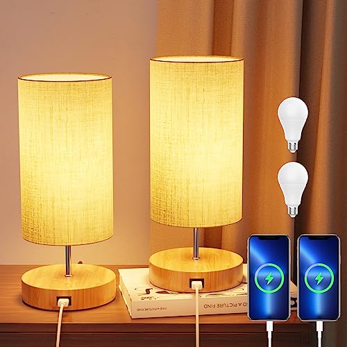 ✅【Design moderno e stile minimalista】Set di 2 lampade da comodino realizzate con base in metallo con venature del legno di alta qualità e paralume in tessuto di lino di alta qualità, molto elegante e bello, adatto a qualsiasi decorazione domestica, puoi posizionare questa lampada ovunque nel tuo so