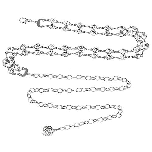 Suyi Cinture A Catena con Strass Regali A Catena in Cristallo A Doppio Strato per Donne Ragazze 120cm Argento
