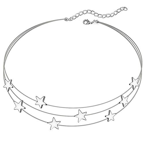 Suyi Collana Girocollo con Stelle Multistrato Dainty Layering Bohemian Chain Collana Clavicola per Donne Silver