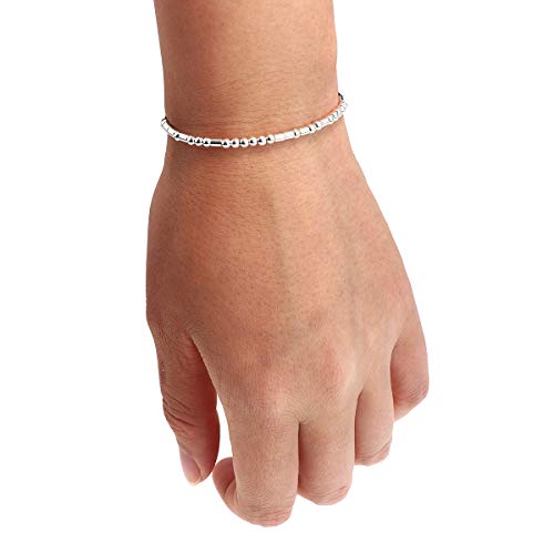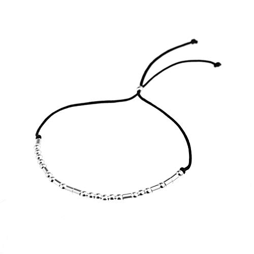 Suyi Morse - Braccialetto in argento Sterling con perline su cordoncino di seta, regolabile, idea regalo per lei e Argento, cod. fba-bt190-brt-NeverGiveUp