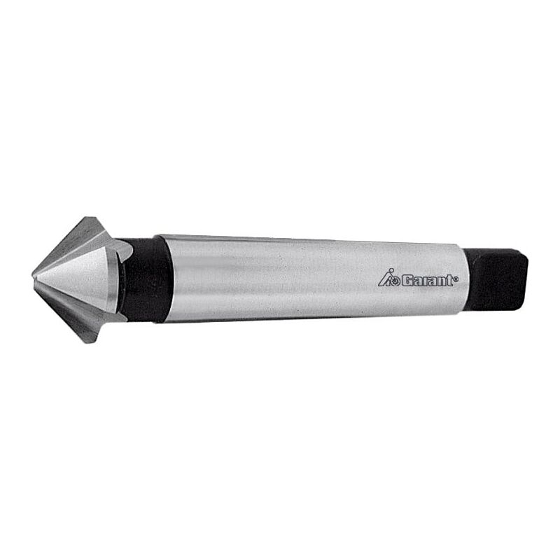 DescrizioneEsecuzione:Svasatori con spoglie rettificate radiali. Le scanalature sono ricavate dal pieno fino alla Dim. 31. L'angolo di spoglia superiore sul tagliente principale varia in funzione del ⌀ dello svasatore, cosicché i trucioli si formano in modo ottimale in qualsiasi punto intervenga il tagliente. Cono di svasatura e contorno sono rettificati e spogliati.Svasatore conico di precisione, prodotto con tolleranze di produzione più basse rispetto alla norma DIN335-D.Nota:Per bussole di riduzione adatte a utensili con attacco CM vedi n. art. 343000 - 343530.Per gli svasatori conici bit con codolo 6,3 mm (1/4 pollice) vedi Gruppo 67.Dati tecnici ⌀ esterno 50 mm Rivestimento non rivestito Angolo di affilatura dello svasatore conico 90 ° Materiale da taglio HSS Numero taglienti Z 3 Norma DIN 335 D Codolo Cono Morse Passaggio interno per LR no ⌀ minimo svasatore per fori a partire da 14 mm Lunghezza complessiva L 150 mm Cono Morse CM 3 Avanzamento f in acciaio < 500 N/mm2 0,25 mm/U