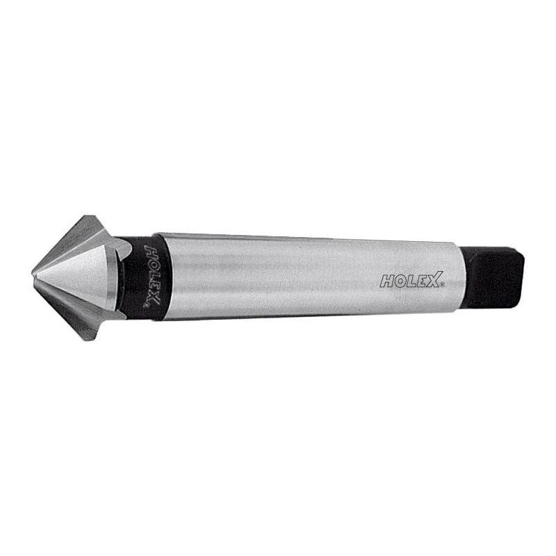 DescrizioneEsecuzione:Svasatori con spoglie rettificate radiali. Le scanalature sono ricavate dal pieno fino alla Dim. 31. L'angolo di spoglia superiore sul tagliente principale varia in funzione del ⌀ dello svasatore, cosicché i trucioli si formano in modo ottimale in qualsiasi punto intervenga il tagliente. Cono di svasatura e contorno sono rettificati e spogliati.Svasatore conico in esecuzione economica.Nota:Per gli svasatori conici bit con codolo 6,3 mm (1/4 pollice) vedi Gruppo 67.Per bussole di riduzione adatte a utensili con attacco CM vedi n. art. 343000 - 343530.Dati tecnici ⌀ esterno 25 mm Rivestimento non rivestito Angolo di affilatura dello svasatore conico 90 ° Materiale da taglio HSS Numero taglienti Z 3 Norma DIN 335 D Codolo Cono Morse Passaggio interno per LR no ⌀ minimo svasatore per fori a partire da 3,8 mm Lunghezza complessiva L 106 mm Cono Morse CM 2 Viti a testa svasata a norma DIN 7991 M12 Avanzamento f in acciaio < 500 N/mm2 0,2 mm/U Colore collarino senza ⌀