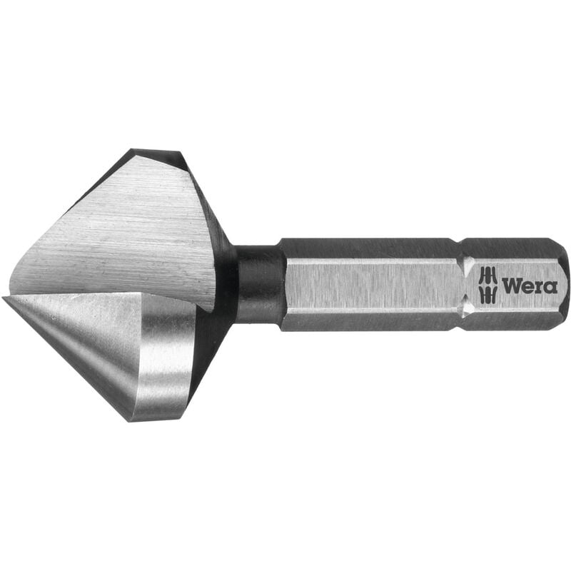 Codolo esagonale da 1/4 pollice a norma DIN 3126 C 6,3. Utensile a 1 tagliente rettificato CBN per sbavare e svasare senza vibrazioni. Vantaggi: Cambio rapido e semplice tra punta e svasatore bit e bit per giraviti. Uso: Ideale per lavori di riparazione e montaggio in utilizzo mobile. Nell'apparecchio con raccordo (n. art. 675000 − 675050) oppure nel giraviti portainserti (n. art. 676400 − 676770). Dati tecnici Materiale da taglio HSS Angolo di affilatura dello svasatore conico Grad 90 Tipo di prodotto Svasatori conici Lunghezza complessiva, mm 40 Numero taglienti Z 1 Codolo esagonale per bit C 6,3 Lunghezza codolo, mm 22 Denominazione originale prodotto 845 Per foro a partire da, mm 1,5 Per viti a testa svasata M8 ⌀ Esterno, mm 16,5