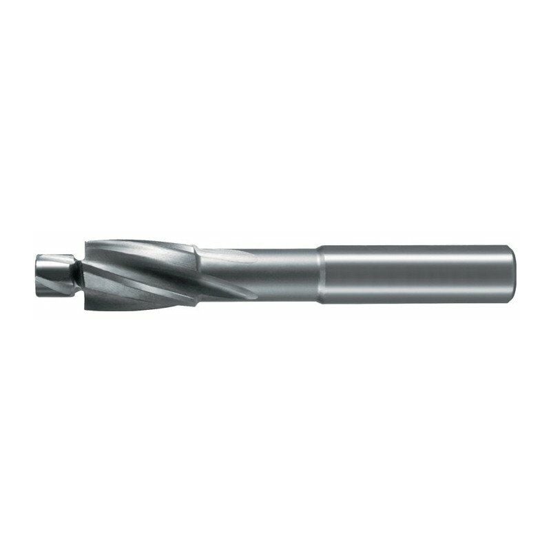HSS · DIN 373 · con albero cilindrico e perno guida fisso · Senkwinkel 180° · per la produzione di abbassamenti per viti a testa cilindrica, viti esagonali e dadi · ideale per l'affondamento senza sbavature e sonagli per acciaio e ghisa, metalli non ferrosi e leggeri · migliori risultati a bassa velocità di taglio Altre caratteristiche tecniche: · Grado: per foro del nucleo filettato · Numero di talee: 3 · Alimentazione in acciaio fino a 500 N: 0,2 mm/W