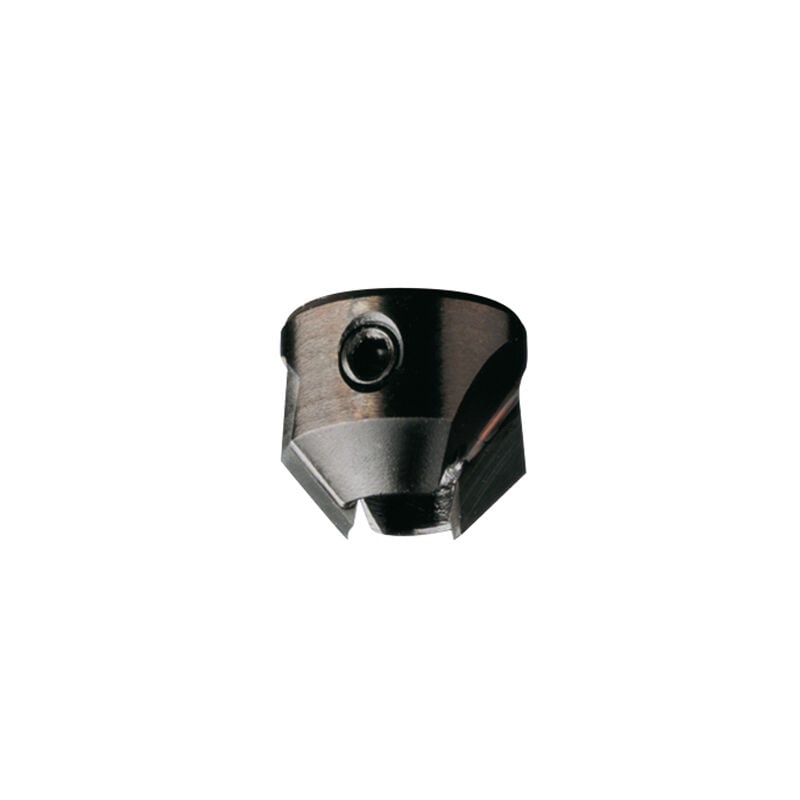 SVASATORE 45° HW Z2 L=15 D=16 d=7 SX Da installare sull'attacco della punta. Profondità variabile. Da utilizzare con i seguenti articoli: - Mandrini: 302-303-305-358-359-360. - Punte ad attacco filettato: 306-307-308-309-373-374-375-338-339-340-341-342-343-344-346-352-353 HW. CARATTERISTICHE TECNICHE: • Realizzati con acciaio speciale ad alta resistenza. • 2 taglienti HW (Z2). • Centratura ottimale ed estrema efficacia di fissaggio dello svasatore nelle gole dell'elica della punta, mediante 2 viti contrapposte, con estremità a coppa. Per lamare-smussare fori su legno massiccio e suoi derivati, anche laminati.