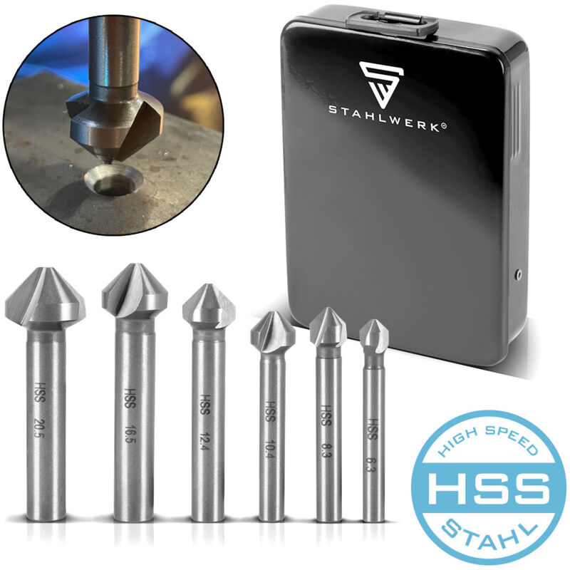 Caratteristiche Con dimensioni di 6,3 / 8,3 / 10,4 / 12,4 / 16,5 / 20,5 mm e un angolo di 90° gradi, le svasature HSS STAHLWERK sono ideali per la rielaborazione dei fori. Le svasature sono generalmente utilizzate per sbavare, svasare o svasare viti a testa svasata. Le svasature hanno una finitura di prima classe, sono estremamente resistenti all'usura e garantiscono una trasmissione ottimale della potenza. Realizzati in acciaio da utensili ad alta lega, gli svasatori sono estremamente robusti e promettono velocità di taglio da tre a quattro volte superiori rispetto agli acciai da utensili tradizionali. Le punte per svasatura sono fornite in una scatola per il trasporto sicuro. Il set di utensili per svasatura è particolarmente adatto per lavori di svasatura e svasatura professionali nell'industria, nel commercio e nel fai-da-te. Dati tecnici Modello: set di svasatori STAHLWERK HSS Dimensioni: 6,3 / 8,3 / 10,4 / 12,4 / 16,5 / 20,5 mm Angolo: 90° grado Materiale: acciaio per utensili