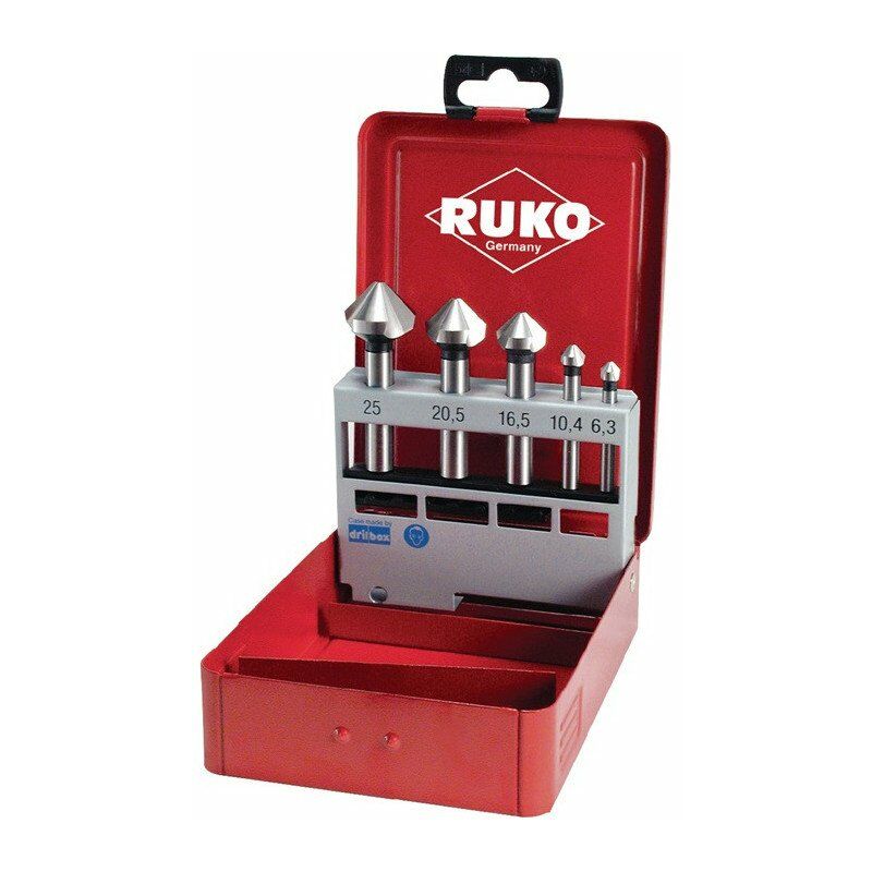 DIN 335 C · 3 Taglio · Angolo di incasso di 90° · ciascuno 1 abbassatore 6,3-10,4-16,5 (albero Ø 10,0 mm)-20,5-25,0 mm · in cassetta metallica Altre caratteristiche tecniche: · Contenuto: 5 parti · Imballaggio: cassetta metallica · Ø: 6,3 / 10,4 / 16,5 / 20,5 / 25 mm · Campo di applicazione: per l'alluminio