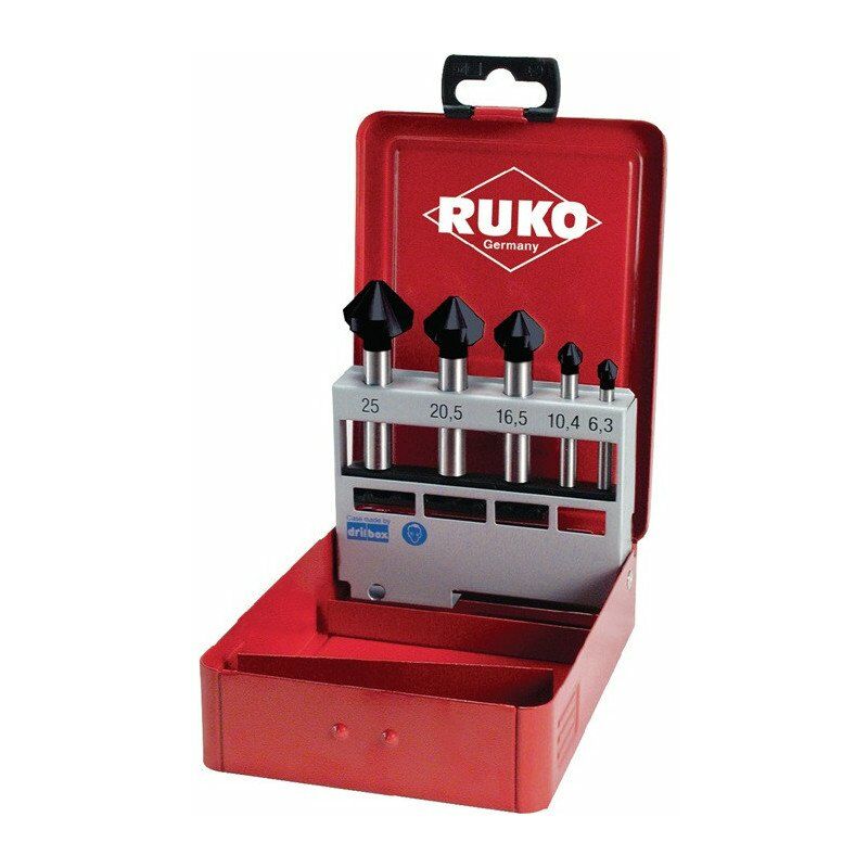 DIN 335 C · 3 Taglio · Angolo di incasso di 90° · ciascuno 1 abbassatore 6,3-10,4-16,5 (albero Ø 10,0 mm)-20,5-25,0 mm · in cassetta metallica Altre caratteristiche tecniche: · Contenuto: 5 parti · Imballaggio: cassetta metallica · Ø: 6,3 / 10,4 / 16,5 / 20,5 / 25 mm