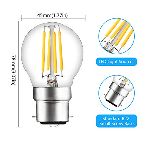 Facile installazione: forma standard G45 con attacco B22, può essere facilmente collegato per sostituire le normali lampadine a baionetta B22.