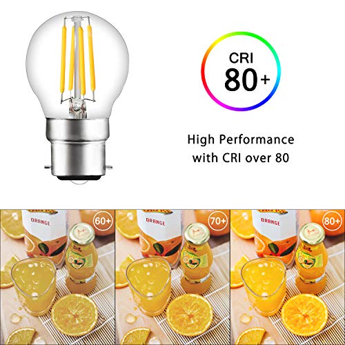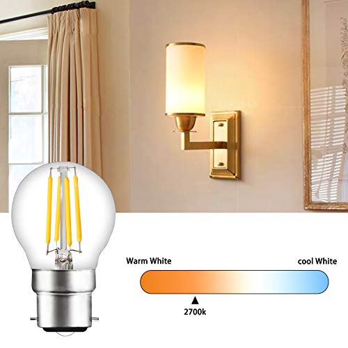 Svater 6 Pezzi B22 Lampadine Led G45 SES Golf LED Trasparente 4W Piccola Base a Vite 40W Bulb a Incandescenza Equivalente Bianco Caldo 2700K Lampadina Filamento Angolo a 360 Gradi Non Dimmerabile