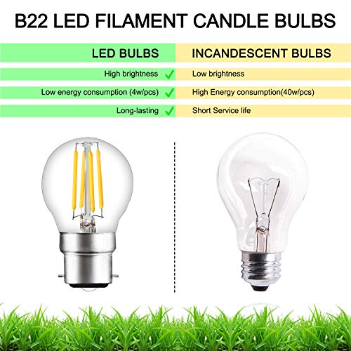 Scelta ideale per la decorazione: stile classico e luminosità calda, base a baionetta in metallo trasparente e trasparente, crea un ambiente romantico e accogliente, lampadine perfette per lampadari, portalampada decorativo e chiusure decorative che compongono la base Con B22 e possono essere utilizzate anche in altri luoghi come edifici residenziali o luoghi commerciali.