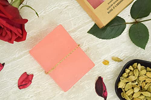 SVATV Handmade Sapone with natural, soothing herbs of Rose & Cardamom Moisturized - Traditional Ayurvedic Herbal body Sapone bars for Men & Women, all skin types - 125g x2 Bars