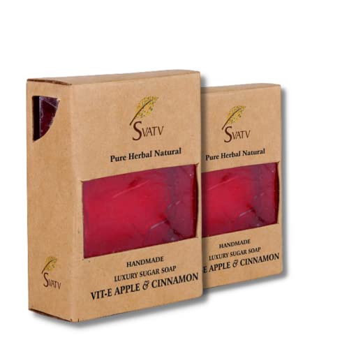 SVATV Handmade Sapone with natural, soothing herbs of Vit - E & Apple Cinnamon Moisturizing for Men and Women - Traditional Ayurvedic Herbal body Sapone bars for all skin types -125g x2 Bars