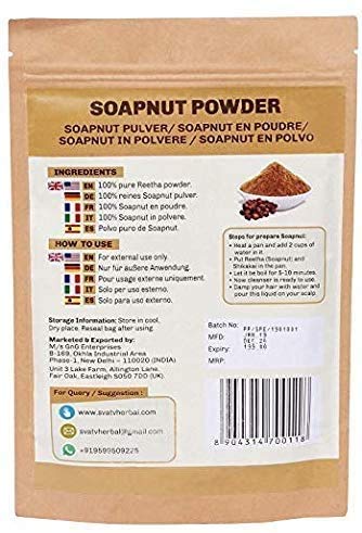 COME USARE:: SVATV Soapnut Powder È Un Prodotto Naturale Per La Cura Dei Capelli Che Rende I Tuoi Capelli Più Lunghi E Luminosi. Puoi Semplicemente Fare Una Pasta Di Polvere Di Reetha Con Acqua Tiepida. Applicare Su Tutto Il Cuoio Capelluto E Sui Capelli.