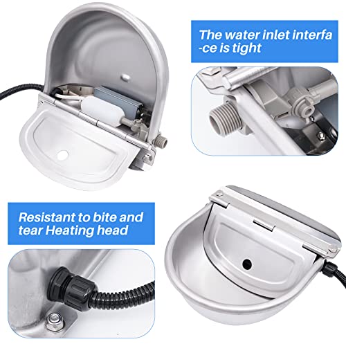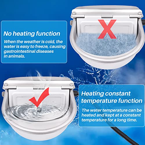 Svauoumu Abbeveratoio Riscaldato per Cavalli in Acciaio Inox Abbeveratoio Automatico Riscaldato con Valvola a Galleggiante Regolabile per Bovini, Ovini, Caprini e Cani (220V)
