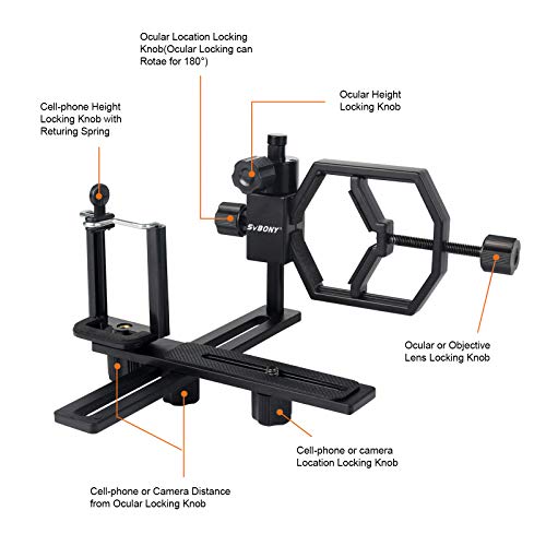 SVBONY Adattatore Smartphone Telescopio,Adattatore per Telefono Telescopio,Adattatore Universale Smartphone per Telescopio Cannocchiale Monoculare Binoculare