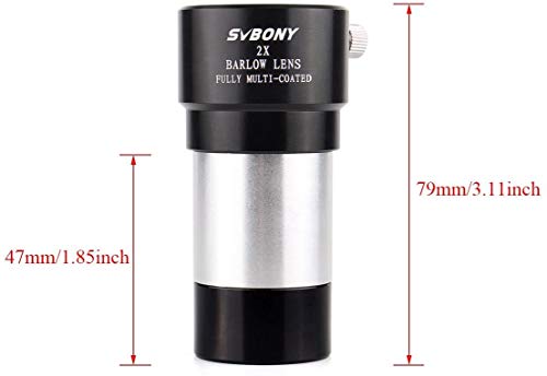 Svbony Barlow Lente 2x, 1.25inch Lente di Barlow in Metallo Multirivestita, Accessorio per Telescopio con Filettatura M42 per Oculare da Telescopio