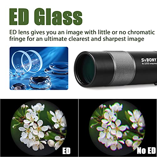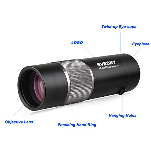 Svbony SV36 ED Monocolo Tascabile 10x32, Compatta, Vetro ED Bak4 Prisma Rivestimento di Fase, Impermeabile Corpo in Lega Di Alluminio Monocolo Professionale per Orologiaio, Campeggio