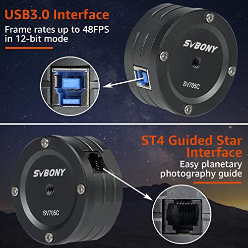 Svbony SV705C Camera Astronomiche Colori, con ST4 Autoguida USB 3.0 CMOS IMX585 8.3MP Fotocamere, Dual Gain HDR Alta Sensibilità NIR, Fotografia Planetaria EAA Imaging