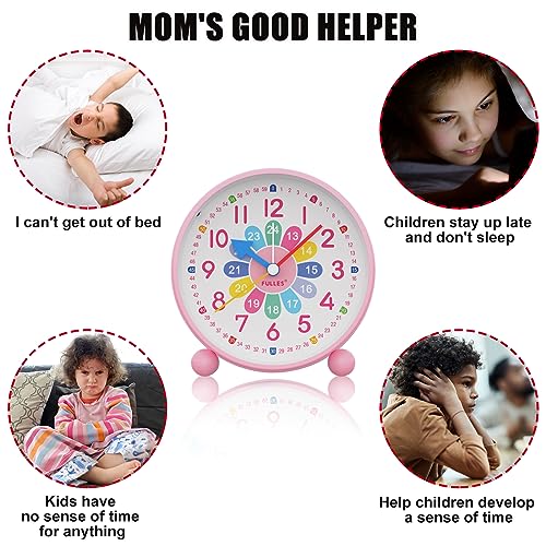 Sveglia senza ticchettio: sveglia per bambini per principianti della scuola, la sveglia adotta un movimento silenzioso e di alta qualità a basso decibel e la lancetta dei secondi si muove senza intoppi, creando un buon ambiente di sonno o di lavoro. La sveglia funziona silenziosamente senza ticchettio fastidioso, in modo che il bambino possa dormire più stabile e profondo.
