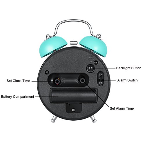 Sveglia da comodino stile vintage, analogica, al quarzo, a doppia campana,3 pollici Grande Quadrante funzione sveglia con allarme sonoro forte, senza ticchettio, luce notturna (Blu)