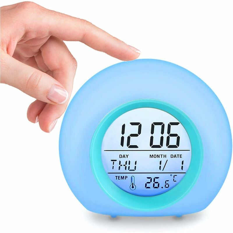 Su questo articolo 【7 colori】 Sono disponibili 7 colori (rosso, verde, viola, giallo, blu, rosa, giallo chiaro) che ruotano automaticamente, possono funzionare come lampada da notte romantica e decorazione luminosa su n ovunqueSe tu vuoi spegnere o accendere la retroilluminazione, premi il pulsante TAP per 10 secondi. 【Bellissimo aspetto】 La sveglia è progettata per essere rotonda e piacevole. Sta benissimo sul comodino o sulla scrivania e aggiunge un colore favoloso all'arredamento della casa.Quando suona la sveglia, basta premere il tasto ? Rubinetto? e il cicalino si interrompe. 【Rilevamento della temperatura】solo sensore di temperatura integrato, rilevamento in tempo reale della temperatura interna. Lasciati stare a temperatura ambiente, goditi una vita confortevole. 【Regalo ideale per i bambini】Alimentato da 3 batterie AAA (non incluse). Con le sue luci soffuse e scintillanti, è una sveglia perfetta per la cameretta di un bambino o per un'atmosfera romantica. (Si prega di notare