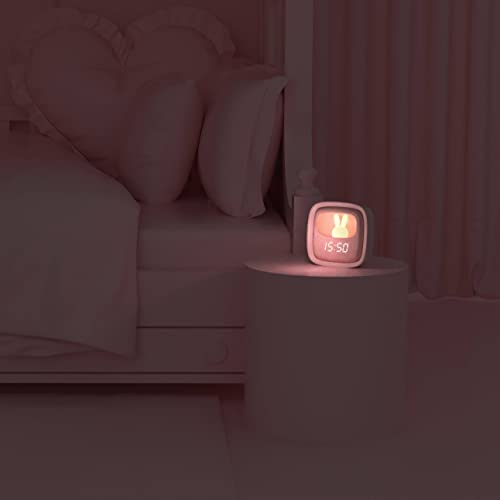 Sveglia Digitale per Bambini e Lampada Billy Clock con Coniglietto Soft Touch - Sveglia Comodino con Data, Ora e 3 Allarmi - Luminosità Regolabile - Rosa - MOB