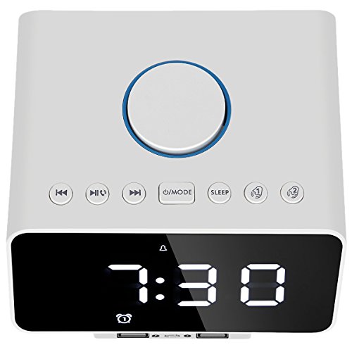 Sveglia Digitale da Comodino,KINGCOO Wireless Bluetooth Altoparlante Lettore MP3 con Doppio Ingresso USB Porta Microfono da 5,5''LED Sveglia Radio FM/Temperatura Giorno/Data Display(Bianca)
