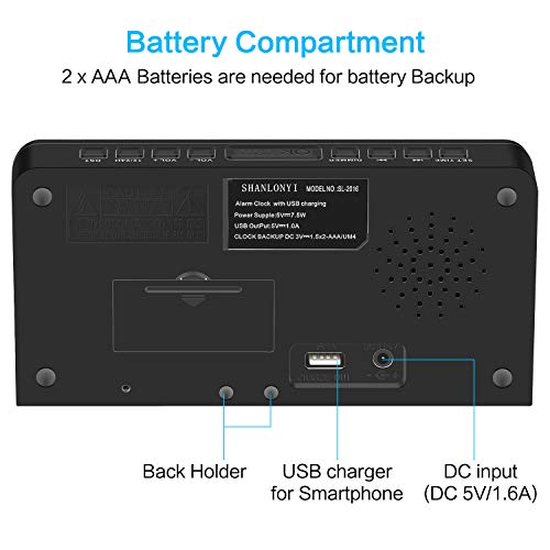 Doppia Alimentazione - La sveglia digitale è alimentata a 5V/1,6A DC e usa 2 batterie AAA (non incluse) come alimentazione di backup. Comodo per alimentare altri dispositivi smart durante la ricarica, come il cellulare, il lettore MP4 e altri dispositivi, in modo facile e veloce.