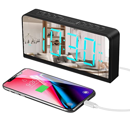 Display a LED blu e ciano - Il display digitale LED da 7 pollici con ampio schermo ad alta definizione, blu e ciano, della nostra sveglia digitale, è molto chiaro con luminosità extra e numeri in grassetto per una lettura facile da più angolazioni, in cucina, nel soggiorno e nella camera da letto.