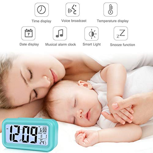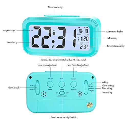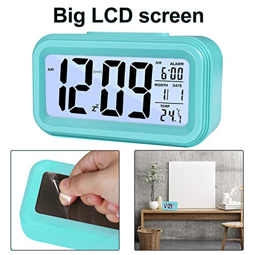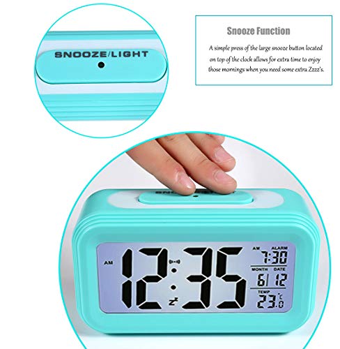 Sveglia Digitale,Grande Sveglia Digitale LCD con Display della Temperatura,attivata dal sensore di luce con funzione Snooze visualizzazione della data, Alimentazione a Batteria (Blu)