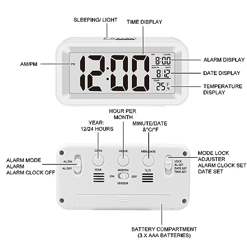⏰【Materiale di Alta Qualità】: Il nostro orologio LCD con involucro in plastica ABS di alta qualità è resistente alle cadute e durevole. Con un silenzioso movimento al quarzo per un sonno tranquillo senza essere disturbati dal ticchettio costante.