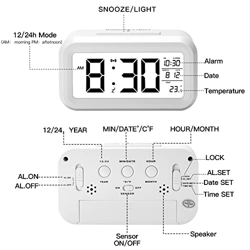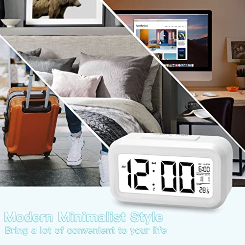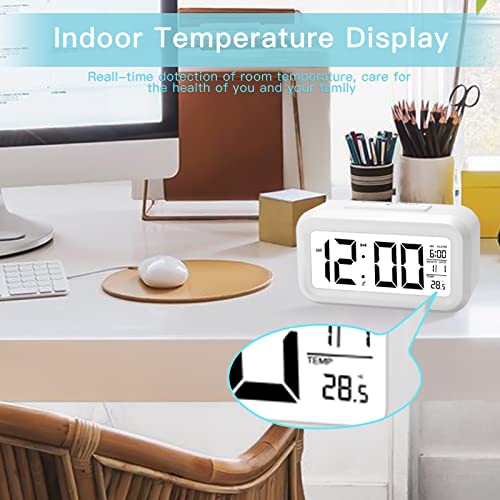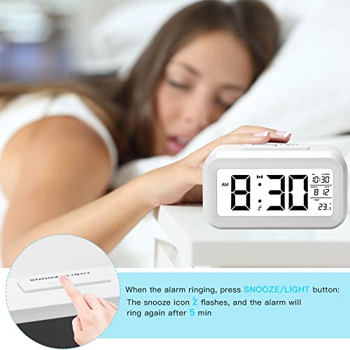 Sveglia Digitale, Qoosea Orologio Sveglia da Comodino Elettronica con Funzione Snooze e Temperatura, Orologio Intelligente con Display a LED e Sensore Notte per Camera da Letto/Ufficio/Cucina/Viaggio