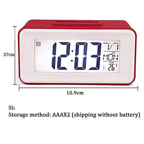 Sveglia Digitale Sveglie da Comodino Funzione di Snooze Sveglia Elettronica Ora Data Temperatura Visualizzazione con 8 Suoni di Allarme Opzionali Orologio da Comodino per Casa Ufficio (Rosso)