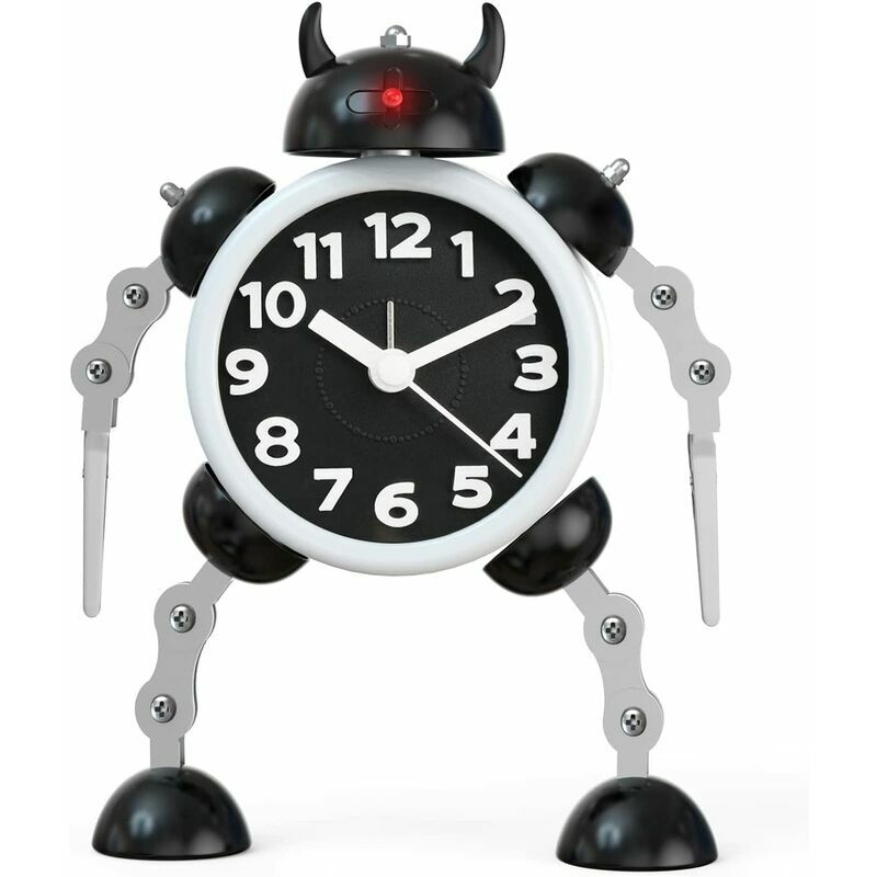 Design carino - Quadrante semplice con un design dall'aspetto carino, abbinato a mani e piedi mobili, in modo che la sveglia del robot possa assumere qualsiasi forma carina. Quando la sveglia suonava, le sue luci degli occhi lampeggiavano, aggiungendo un'immagine più vivida e bella al risveglio. Silenzioso senza ticchettio - La sveglia è super silenziosa senza ticchettio e non c'è fastidioso ticchettio . È ideale per chi ha il sonno leggero e per i bambini che hanno bisogno di un ambiente tranquillo per dormire. È importante offrire ai bambini un ambiente tranquillo per dormire. Facile da regolare - Semplice e facile da capire. Ci sono due pulsanti di impostazione per impostare l'ora e l'ora della sveglia. È facile per i bambini padroneggiare le impostazioni, che è più facile da impostare rispetto alle sveglie digitali. La sveglia utilizza una batteria al carbone da 1,5 V AA (non inclusa) Dimensioni - Sveglia: 6,69 pollici (altezza) x 3,93 pollici (larghezza) x 1,37 pollici