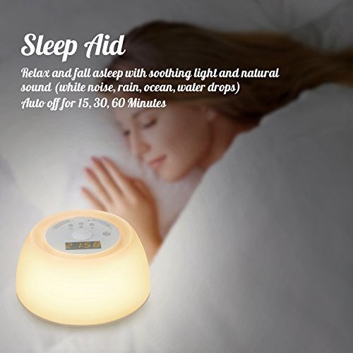 Sveglia Wake Up Light,VADIV WL02 Sveglia con Luce Simulazione Alba Luce Notturna con 9 Colori Luminosità Lampada Letto con Funzioni d'Aiuto per Camera Stanza Bambino Lampada Comodino Portatile