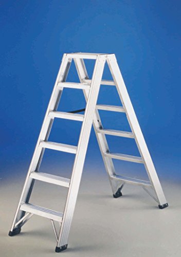 Scala doppia a gradini a due tronchi di salita per utilizzo professionale costruita in alluminio estruso nervato