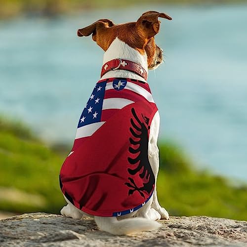 Sventolando Bandiera di Albania E USA Divertente Cane Camicie Pet Felpa Vestiti T Shirt Senza Maniche Estate Serbatoio Per Cucciolo Gatto
