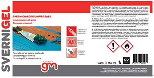 Gm SVERNI GEL, Sverniciatore Universale in gel ideale per ferro, legno e muro, agisce in profondità su tutti i supporti eliminando gli strati di vernice di ogni tipo - NON COLA, barattolo da 750ml (2)