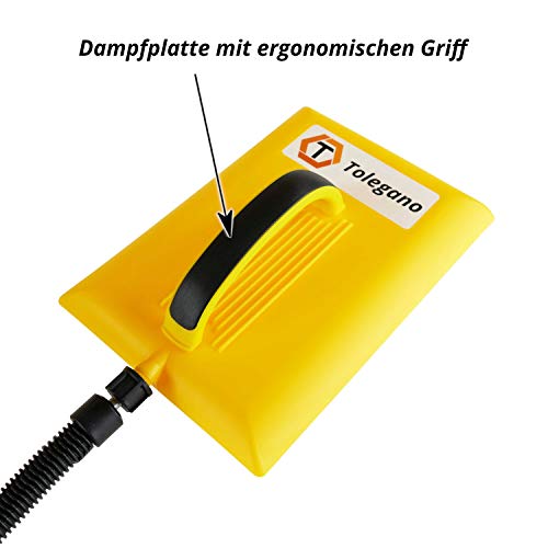 Con una lunghezza del tubo di 3 metri sei assolutamente flessibile e la grande piastra a vapore con impugnatura ergonomica rende il lavoro piacevole