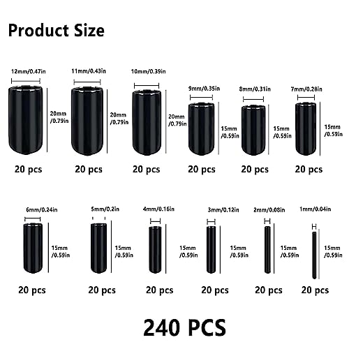 SVOCK 240pcs Tappi Terminali In Gomma, 12 Set Tappo Chiusura Plastica Nero, Tappi Gomma Multifunzione, Cappuccio Del Bullone Della Flessibili, Cappucci Terminali In Gomma Nera per Viti Tubi Tondi
