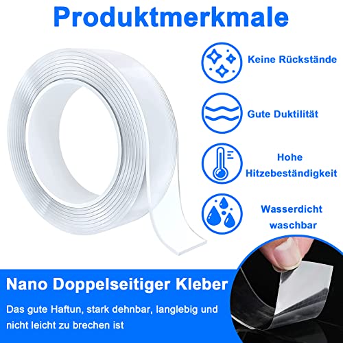 SVUPUE Nastro Biadesivo Extra Forte, 2 Pezzi Nano Nastro Biadesivo, 3 M Nano Tape Nastro Adesivo Lavabile Senza Traccia, per Cucina, Auto o Ufficio