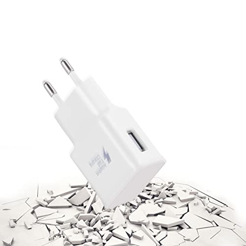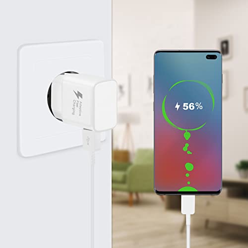Swadaws Caricatore + Cavo Compatibile con Samsung Galaxy S8,S9,S10 Plus,S10e,A50,S20,S20 FE,S21,S21 Ultra,Note 8,9,10,20, 15W USB Caricabatterie (5V-2A | 9V-1.67A) - Bianco
