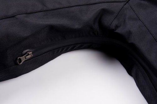 Taped zippers, taped seems, 3-layer, hood, Underarm ventilation