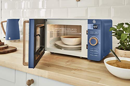 Swan Nordic - Microonde digitale 20 l, 6 livelli di funzionamento, 800 W, timer 30 min, facile da pulire, design moderno, maniglia effetto legno, blu opaco