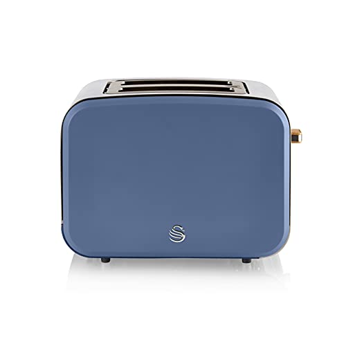 Swan Nordic - Tostapane con slot ampio, 2 fette, 3 funzioni, 6 livelli di tostatura, design moderno in acciaio inox, maniglia effetto legno, blu opaco