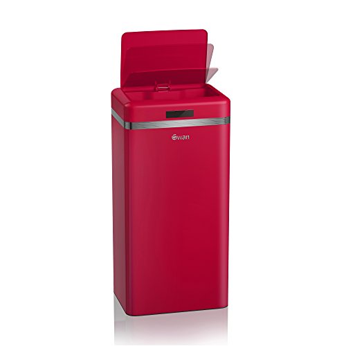 Swan Retro SWKA4500RN Pattumiera con Sensore di Apertura Automatica, Metallo, capacità 45 Litri, Design Vintage, Rosso