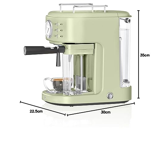 Swan Retro One Touch SK22150GN Macchina Espresso Semiautomatica, Caffè Espresso e Cappuccino, 15 Bar, Montalatte con Serbatoio del Latte 0,5 l, 1,7 l, Tazza Grande o Piccola, Vintage, Verde, 1200W