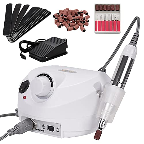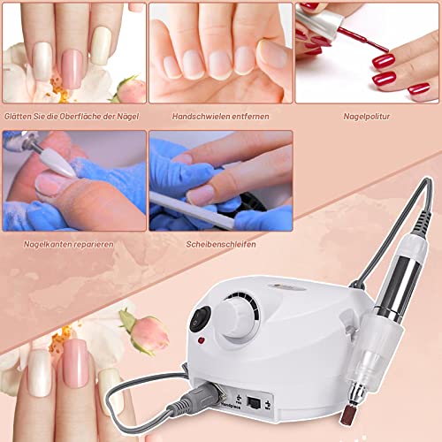 SWANEW - Fresa per unghie, 30000 giri/min, regolabile e manicure abrasive, fresa per manicure, pedicure, set da 18 W, lima elettrica per unghie (bianco)