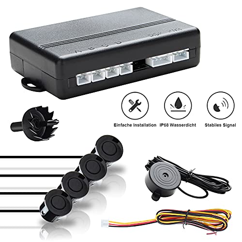 SWANEW Sensori Parcheggio Auto Parcheggio Posteriore Kit,4 Sensori Radar con Suono di Allarme - Nero